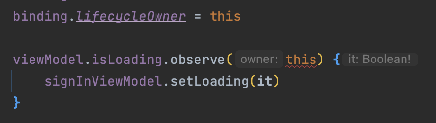 심지어 DataBinding의 lifecycleOwner에는 정상적으로 잘 들어가지만 observe에서 사용할 때만 빨간줄로 에러가 표시된다.