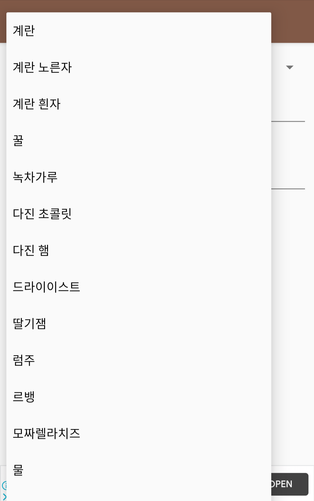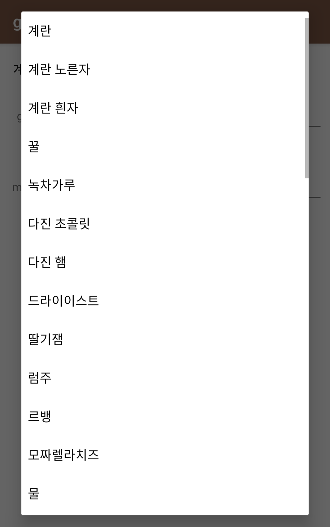 처음 Playstore에 등록했던 앱인 g to mL 변환기에서 변환 대상 항목을 설정하기 위한 View로 Spinner를 채택했다. 많은 공간을 차지하지 않고 다양한 항목을 보여줄 수 있어 다양한 용도로 활용이 가능하다.