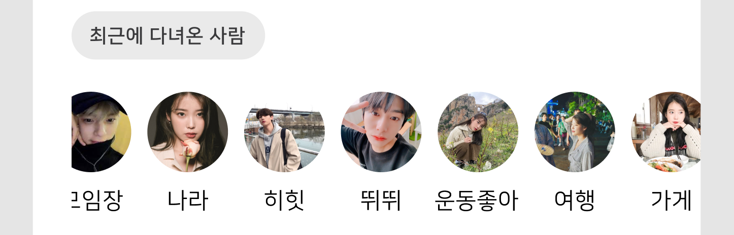 구현을 하다보면 위 사진처럼 RecyclerView의 첫 번째 아이템에만 간격을 주고싶을 때가 있다. 하지만 이럴 때 RecyclerView의 왼쪽에 Margin을 주는 방식으로 구현한다면 스크롤이 잘리게 돼서 모양이 안 예쁘다.